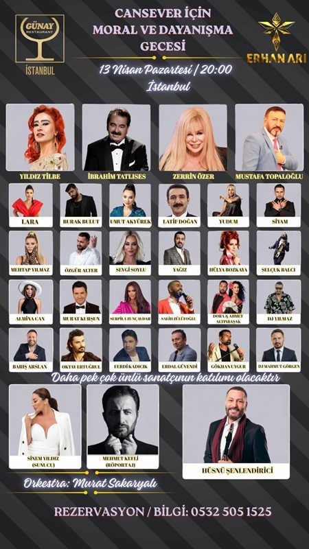 Gecenin sunuculuğunu Sinem Yıldız üstlenirken, sahnede Murat Sakaryalı Orkestrası yer alacak. Sanatçılar, Cansever için sahneye çıkarak hem moral verecek hem de dayanışmanın güçlü bir örneğini sergileyecek.