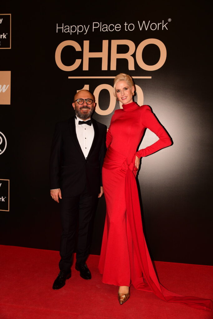 İnsan kaynakları alanında stratejik liderliği ve kurumsal dönüşümü görünür kılmayı amaçlayan “Happy Place to Work® CHRO 100 Ödül Galası”, Sabancı Üniversitesi Gösteri Merkezi’nde gerçekleştirildi. Türkiye’nin farklı sektörlerinden önemli markalarının üst düzey insan kaynakları liderlerinin yer aldığı gece, yaklaşık dokuz yüz seçkin davetli bir araya geldi. Gecenin yıldızı ise sunuculuk yapan Wilma Elles oldu. Ünlü oyuncu sunuculuğu, esprileri ve kırmızı elbisesi ile ilgi dikkat çekti.